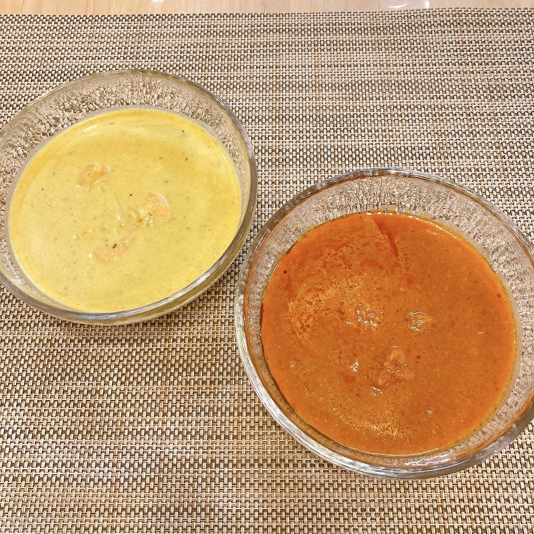 素材を生かした冷やして食べるえびとトマトのカレー(写真右)350円