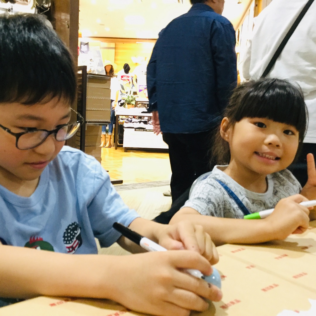 小さなお友達はお父さんお母さんの似顔絵を描いてプレゼントしたり、自分のお気に入りのキャラクターや動物を描いたり、ワークショップを担当したスタッフもとてもほっこりした気分になりました。お父さん方の目尻が下がってる様子にもほっこりです。