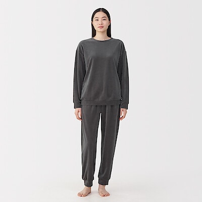 婦人 コットンベロア 長袖ルームウェアセット 婦人XL・チャコールグレー