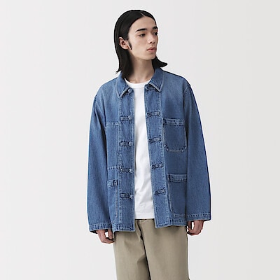 商品名:紳士 木の実から作ったカポック混デニム 結び釦ジャケット