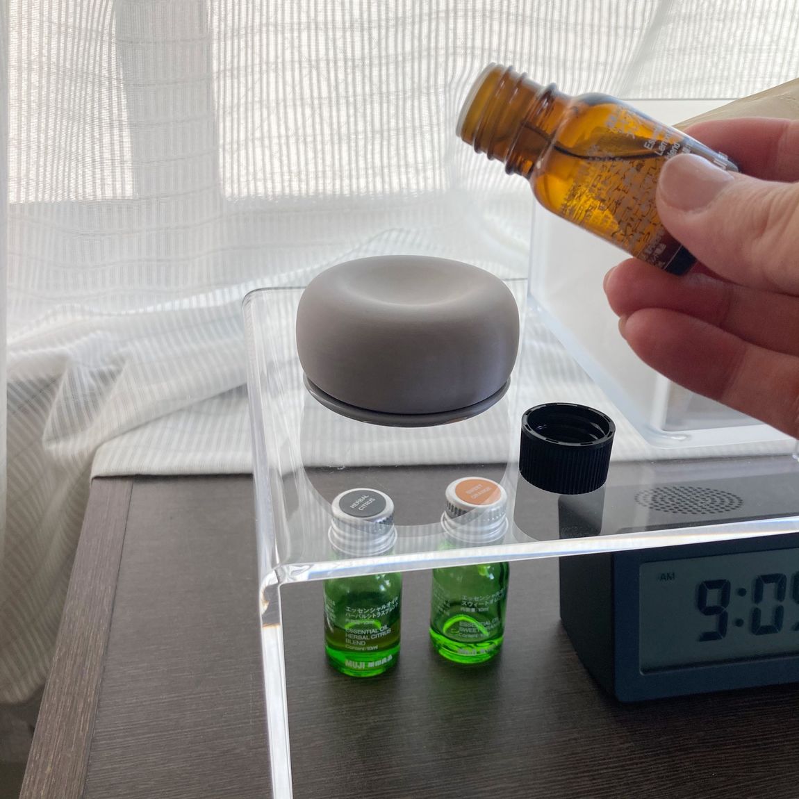 寝る前にアロマストーンにオイルをたらし、翌朝・・・