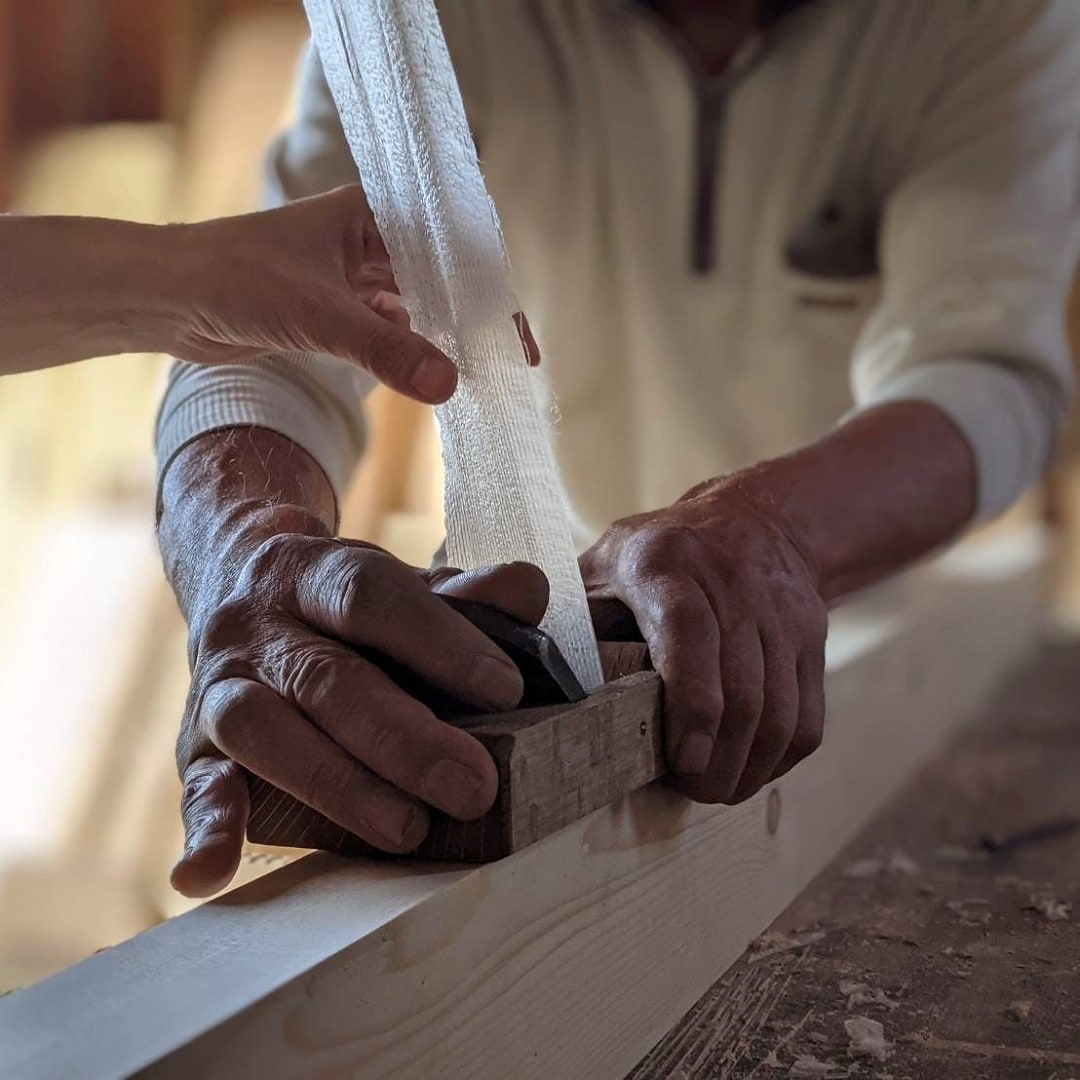 木材の材質や香り、端材や廃材がどのようにカンナ屑になったのか「アップサイクル」や大工さんの様子などを伝えながらのワークショップ。霧吹きをすると木の香りが強くなるのを感じたり、クルクルとしたカンナ屑の面白い特徴を楽しみながら製作のお手伝いさせて頂きます。