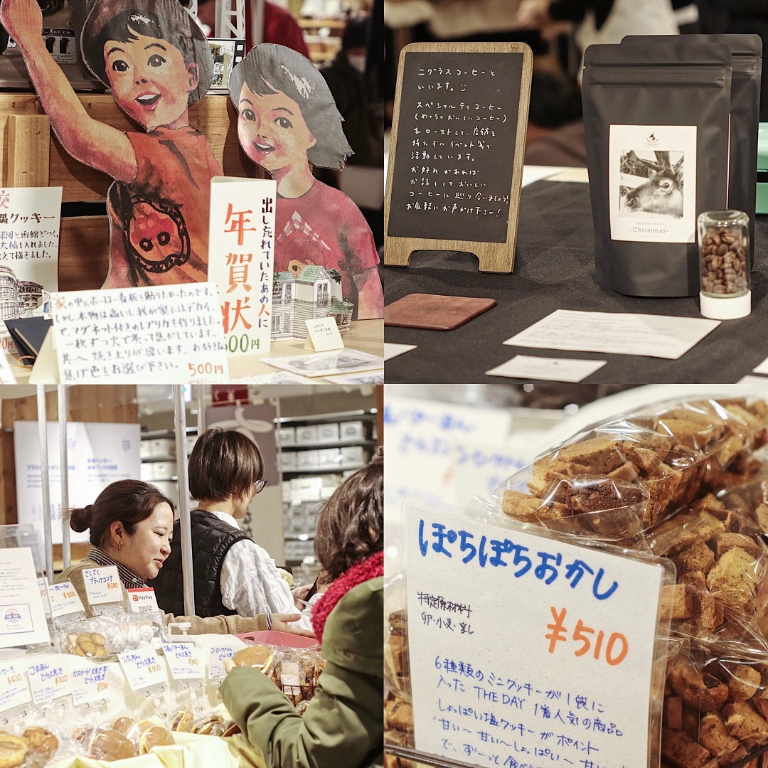 今回のつながる市は、クリスマス直前ということもありクリスマス、年末らしい商品が並んでいました。