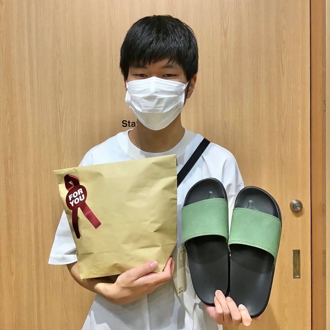 お家いる時間が多いので外での用事や散歩に使ってほしいと、サンダルを選んでくれたのは、男子学生スタッフです。
