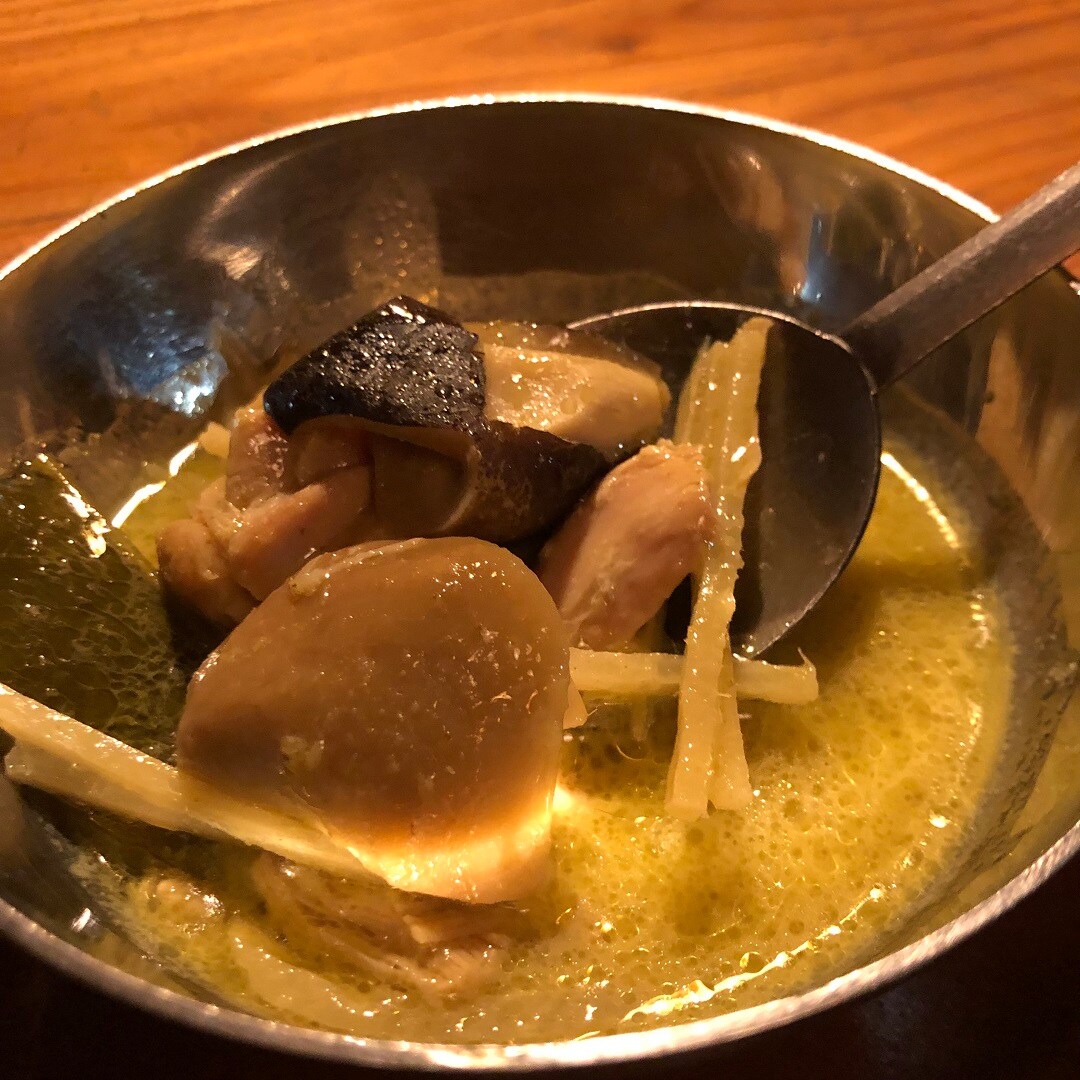 辛さを感じる唐辛子をつかわずにココナッツミルクにハーブの香りをきかせて仕上げました。