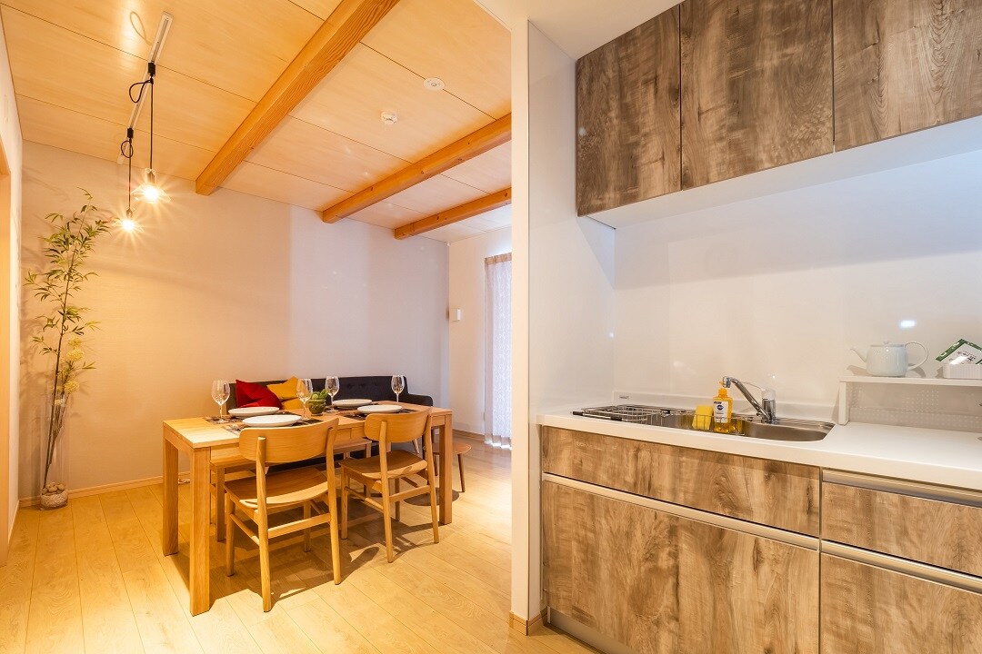 共用部のダイニングテーブルやチェア、食器などの備品をご提案いたしました。