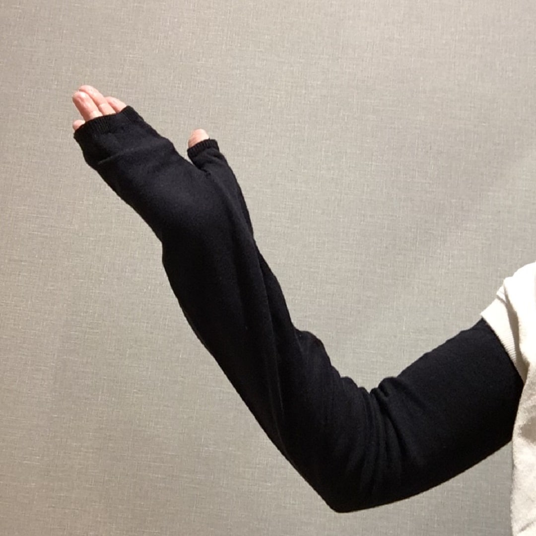 しっかり腕が隠れる長さなので、紫外線カット以外にも、エアコンの冷えから体を守りたい時も安心です。