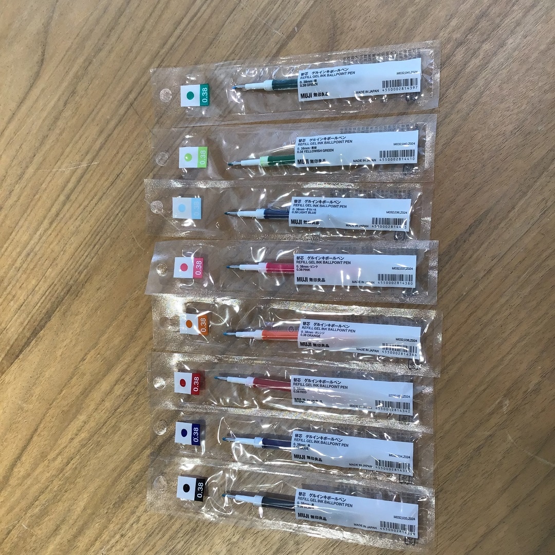 ちなみに、ペンの替芯の色は、0.38mmと0.5mmは9種類、0.7mmは4種類あり、