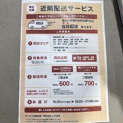 【二子玉川】近隣配送サービスのお知らせ|2F承りカウンター