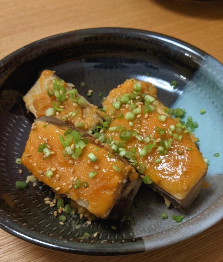 厚めにカットして生姜を混ぜた味噌を表面に塗りました。
