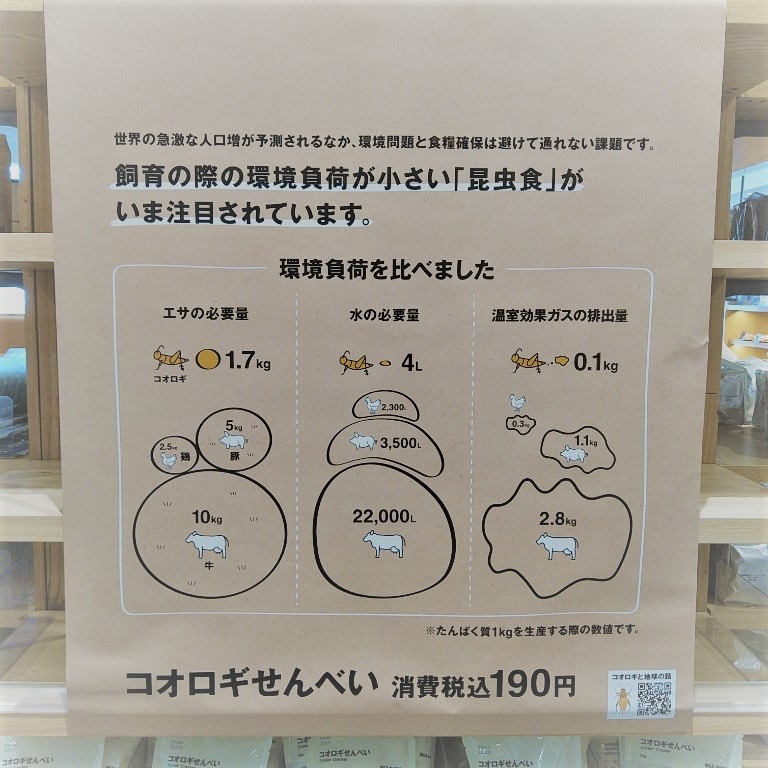 発売当初から話題になったコオロギせんべい。二子玉川にも本日はじめて入荷しました。