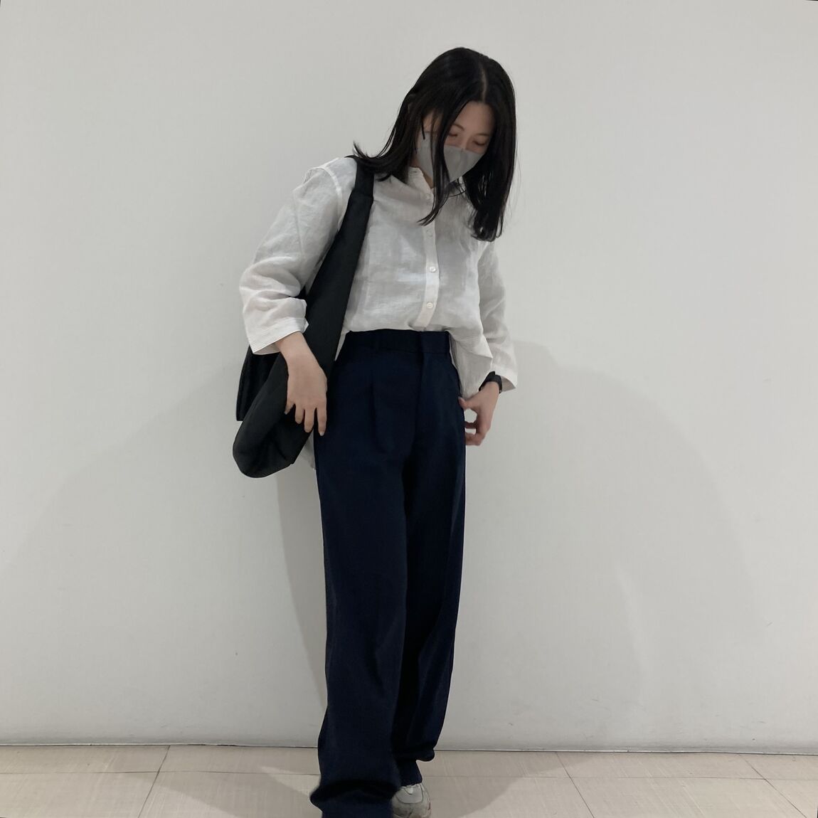 婦人 リネン 洗いざらしレギュラーカラー長袖シャツ 婦人S・白
