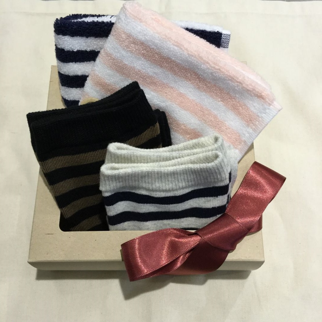 また、ボーダーのハンカチや靴下をギフトボックスに詰めて、身近な方にボーダーのお裾分けをしたりしても、ちょっとした遊び心で楽しいかもしれません。