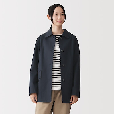 婦人 撥水 コットン混 ツイル ステンカラーハーフコート 婦人L・ダークネイビー