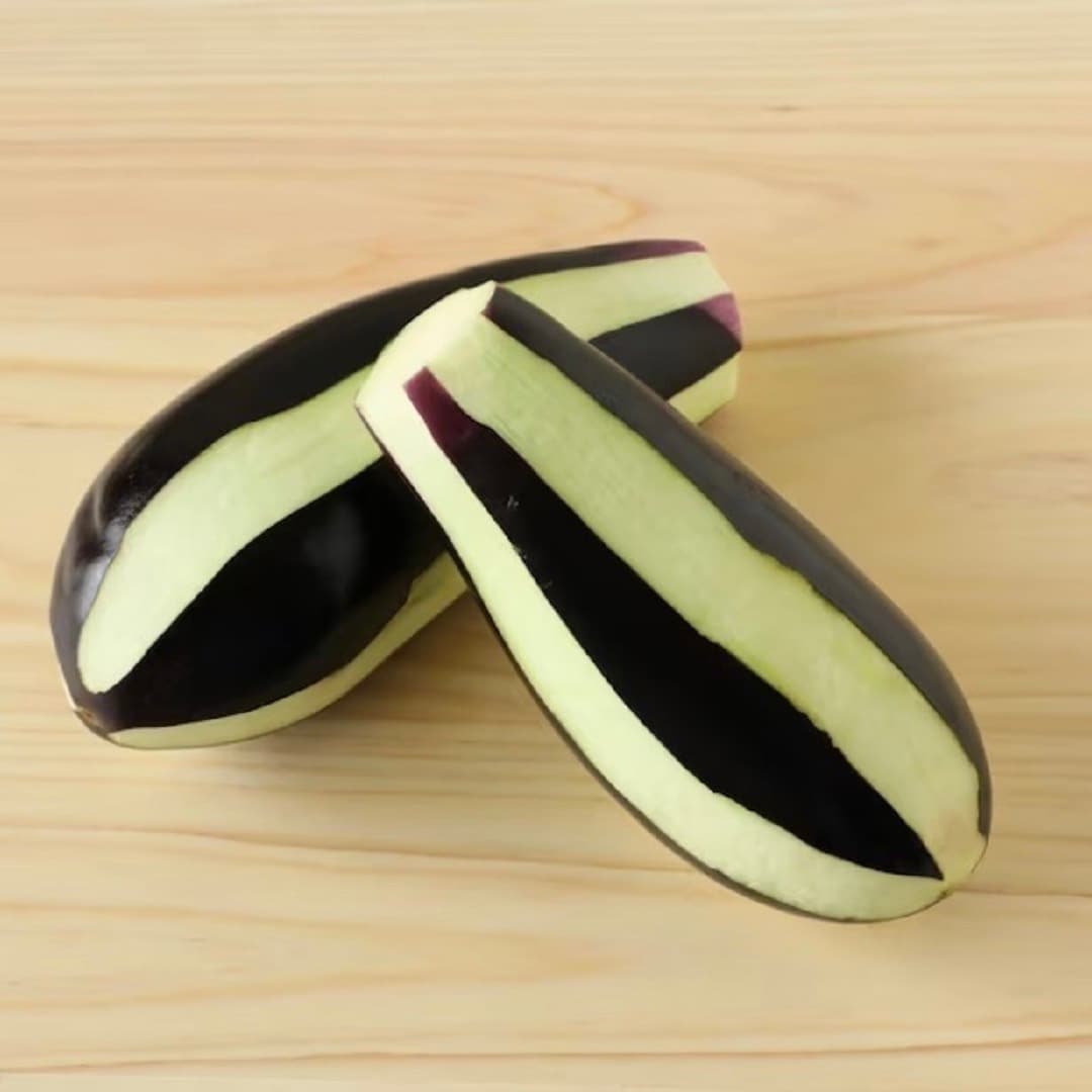 この処理をする事で、硬い皮が気になりにくくなるし、ナスに味が染み込みやすくなり、お料理も一段と美味しくなります。ぜひお試しください。