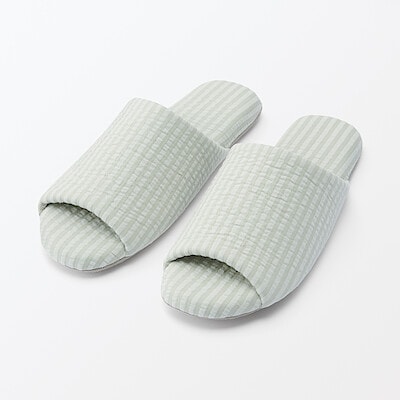 『綿サッカー織 履き心地やわらか足なりスリッパ』