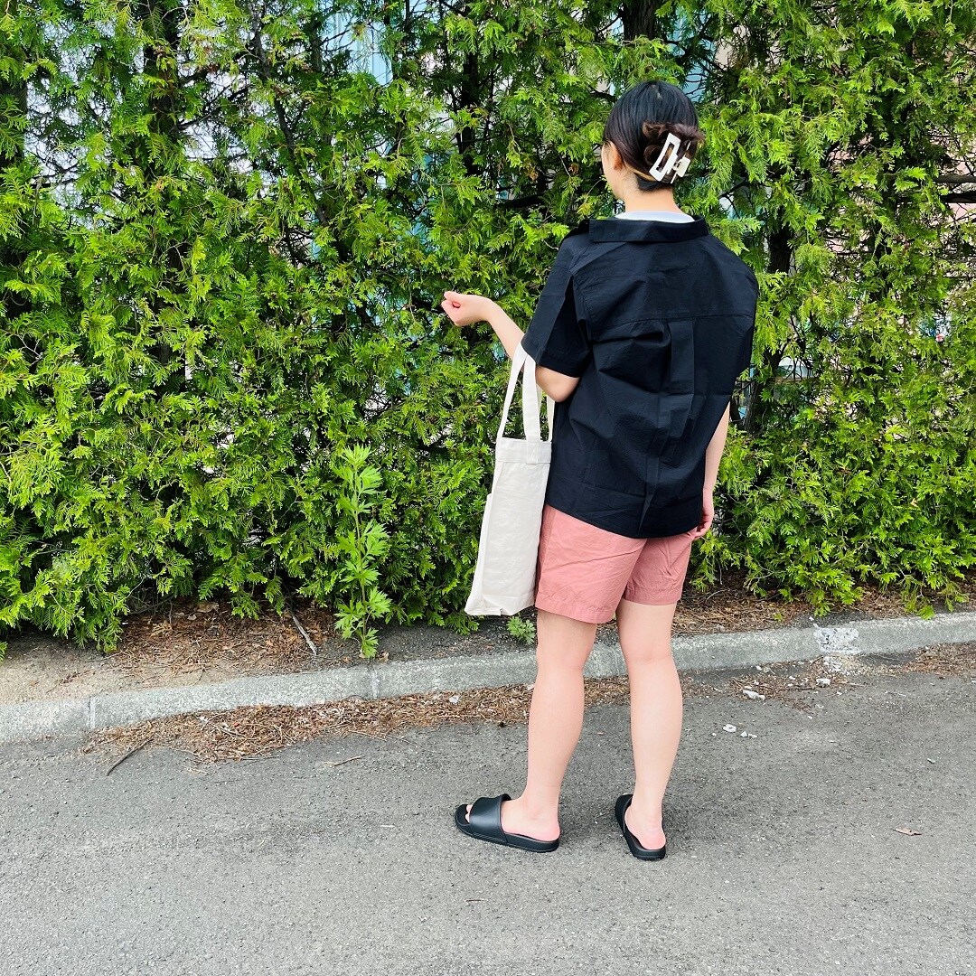 ハリ感がある生地で、短すぎず、足がきれいに見える丈感。