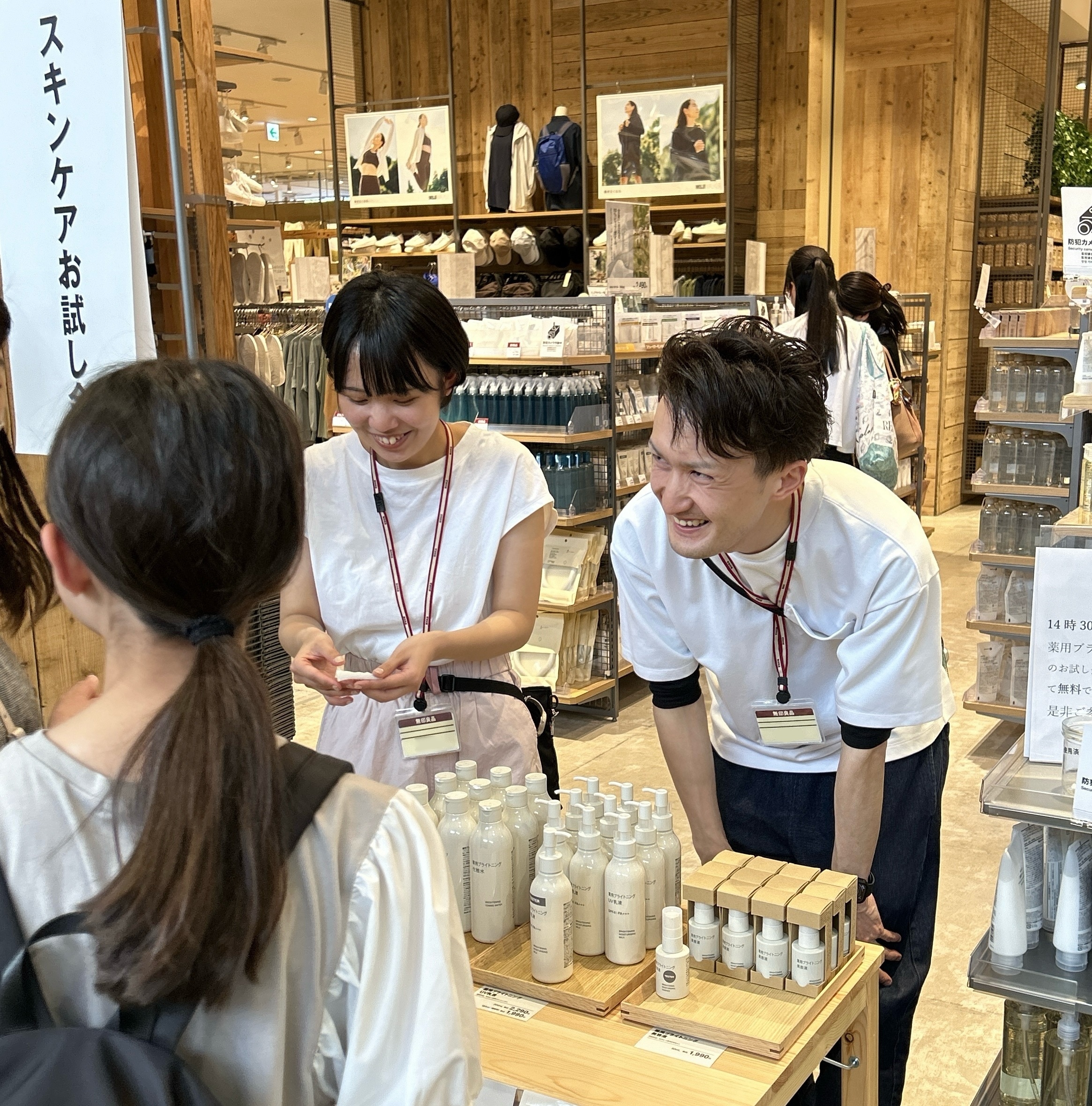 子どもから大人まで、多くの方にお試しいただき、使い方や効能を説明いたしました。商品を使ってみて