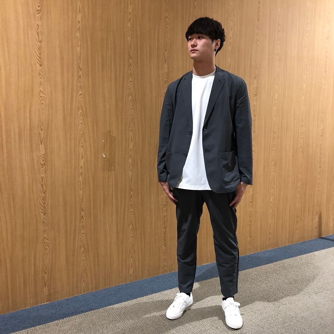 インナーをTシャツにすることで、カジュアルに着こなしました。