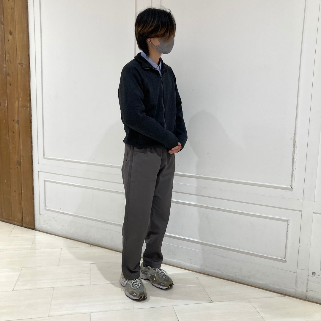 ミラノリブ編みのフルジップカーディガンを使ったコーディネートです。