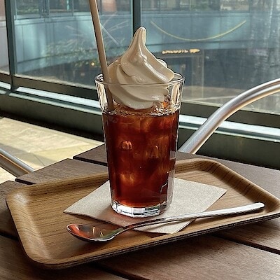 【CafeMUJIキャナルシティ博多】プラス300円でフロートに、トッピングソフトクリーム