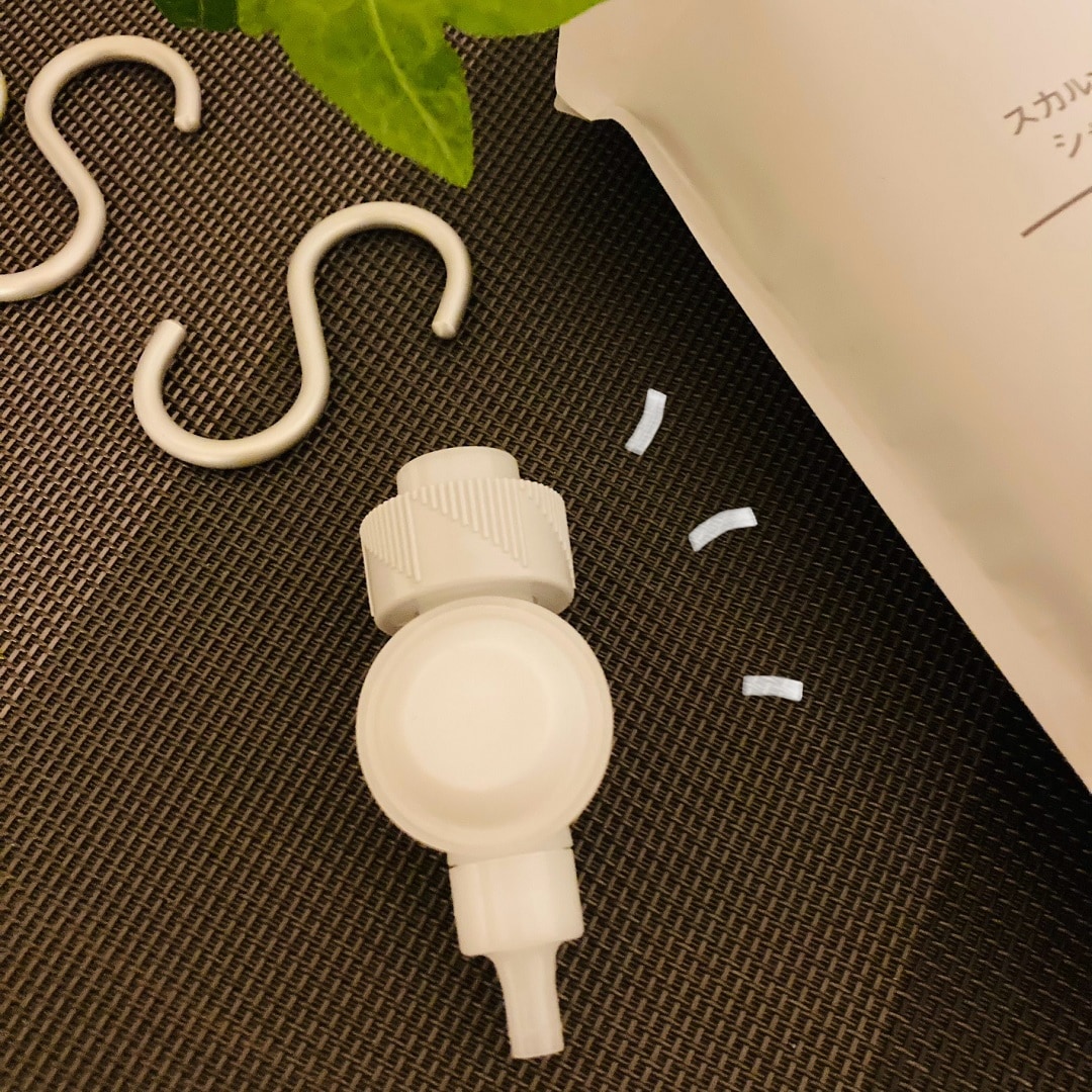 無印良品のシャンプー・コンディションナー・ボディソープ等の詰替えパウチに取り付けて使えるノズルです。
