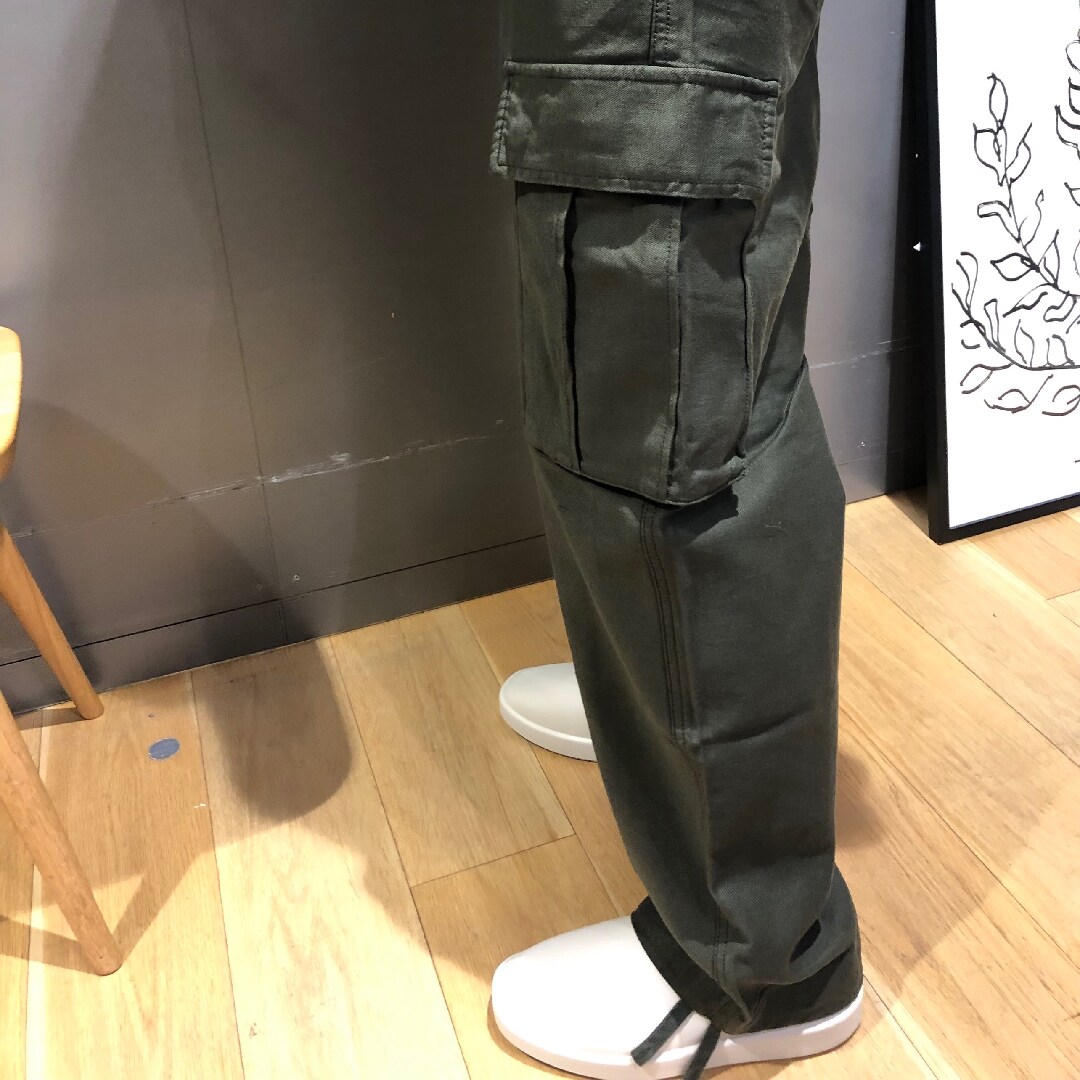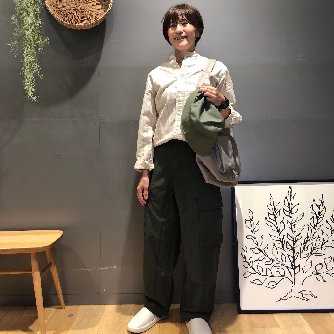 合わせたカーゴパンツも紳士のアイテムですが、裾の紐でサイズ調整がしやすく、ゆったりと楽にはける一着です。