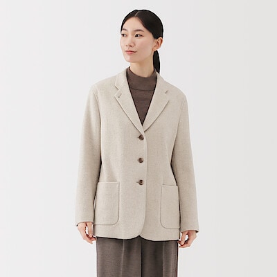 商品名: 婦人再生ウール混ツイードジャケット(サンドベージュ)