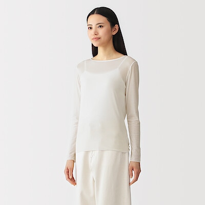 商品名: 婦人 なめらかシアークルーネック長袖Tシャツ