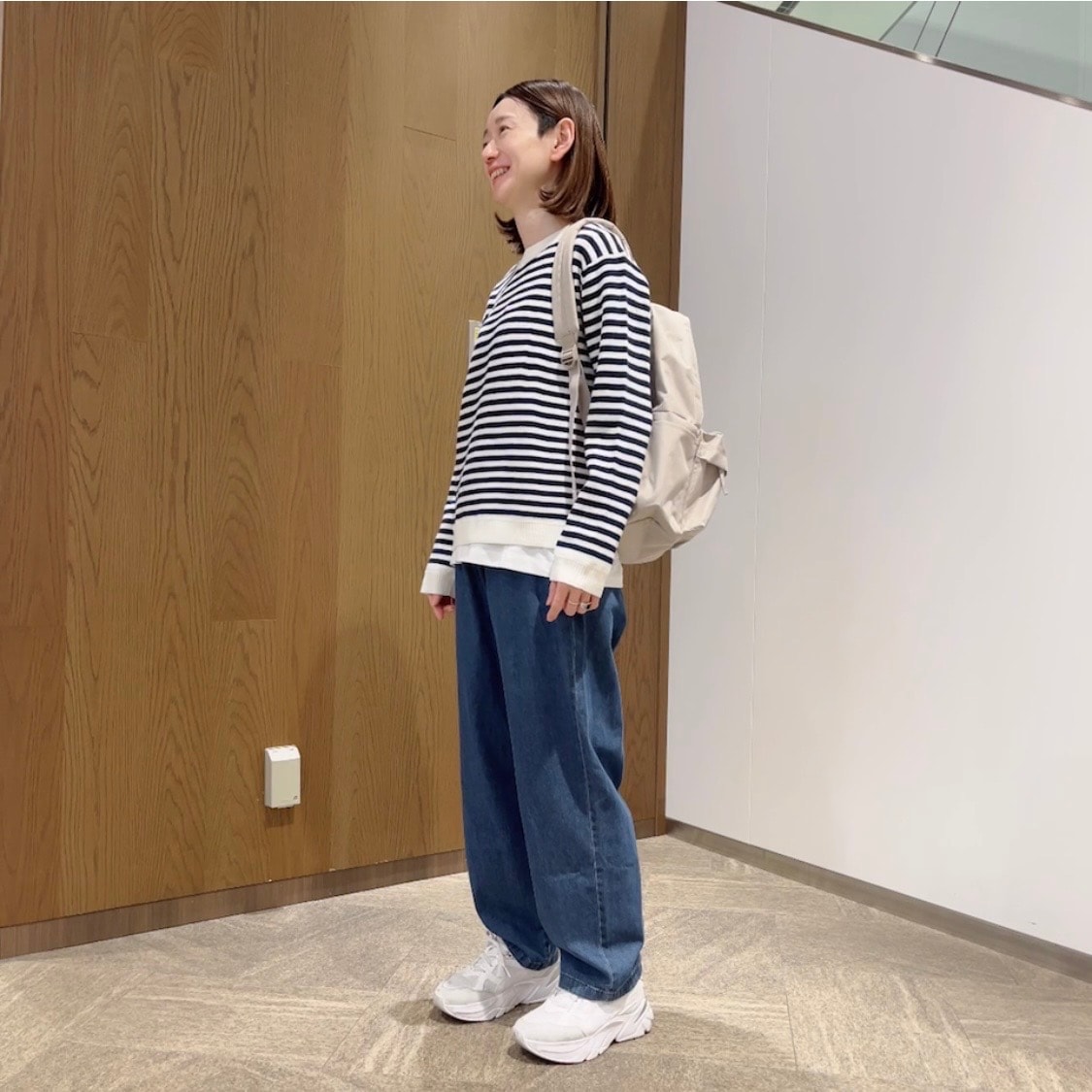 シルエットがゆったりとした今の時期から春頃まで着られるコーディネートです。