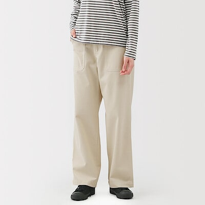 婦人 洗いざらし ヘリンボーンベイカーストレートパンツ 婦人XS・アイボリー