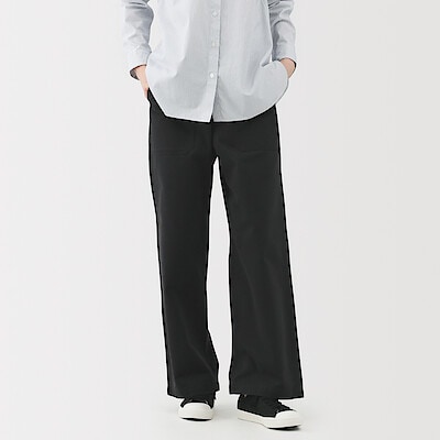 婦人 洗いざらし ヘリンボーンベイカーストレートパンツ 婦人S・黒