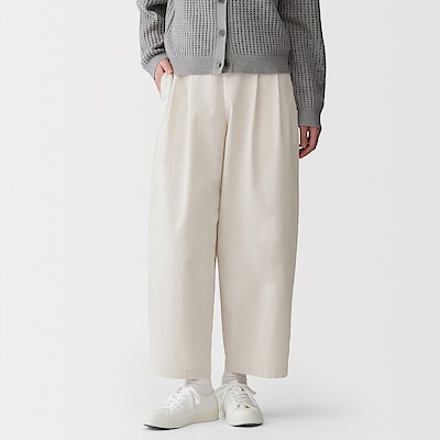 婦人 高密度ツイル ワイドテーパードパンツ 婦人S・アイボリー
