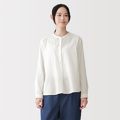 婦人 カポック混 二重ガーゼ 長袖ブラウス 婦人S・オフ白