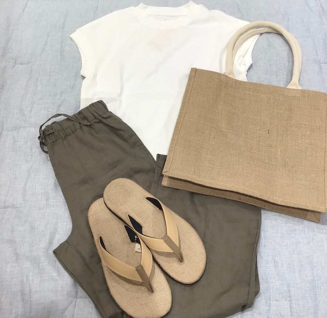 Tシャツとのコーディネートにジュートサンダルを合わせてみるのもおすすめです。
