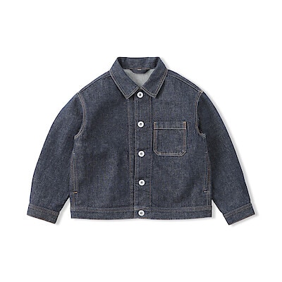 男の子はTシャツにデニムジャケットとワイドパンツを合わせた、統一感のあるデニムスタイル。