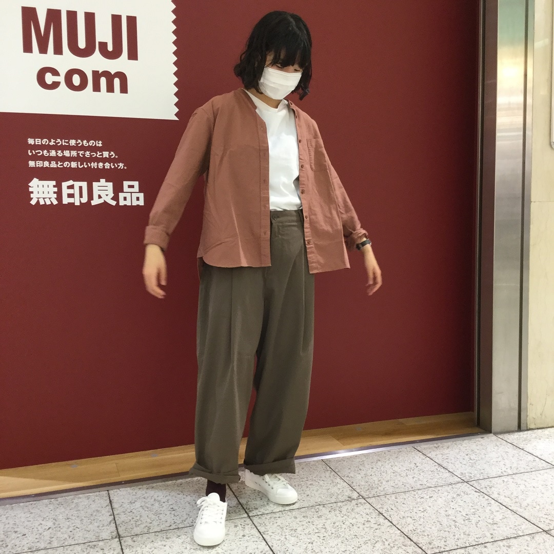洗いざらしオックススタンドカラーシャツ レンガ 消費税込1,990円