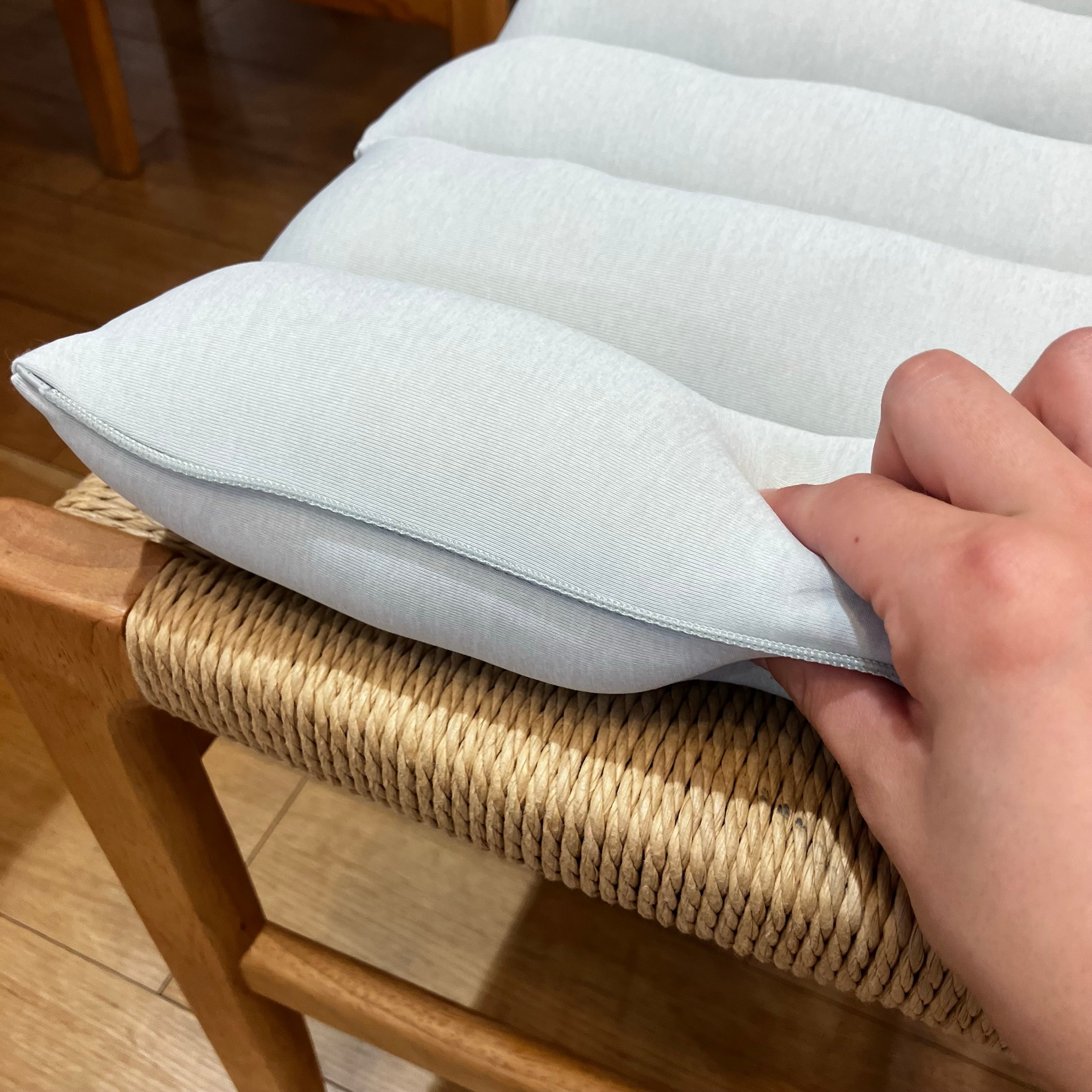 こんな風に硬い椅子の下に敷くことで、座り心地が良くなります。