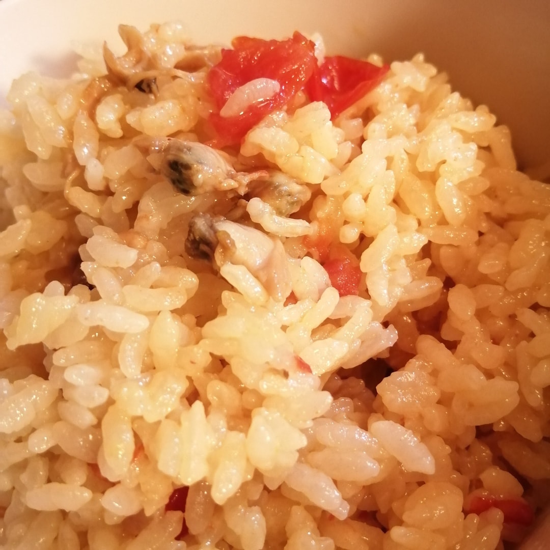 お米がシットリ、つやつやしています。海鮮の具材の香りが漂ってきて食欲がそそられます。あさりがごろっと入っていて、とても本格的です。