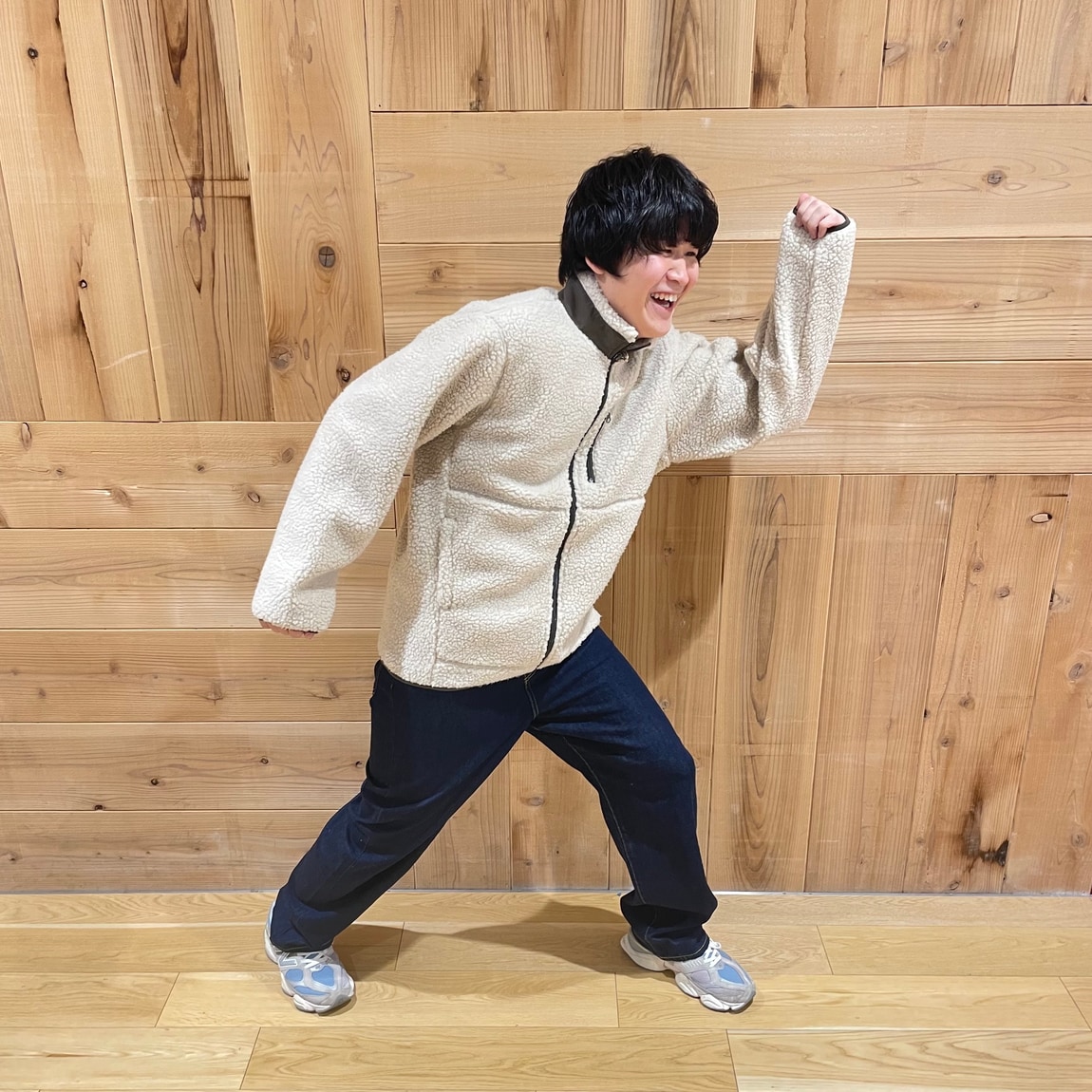 寒い季節におすすめしたい、暖かい「ボアフリースジャケット」を着用しました。