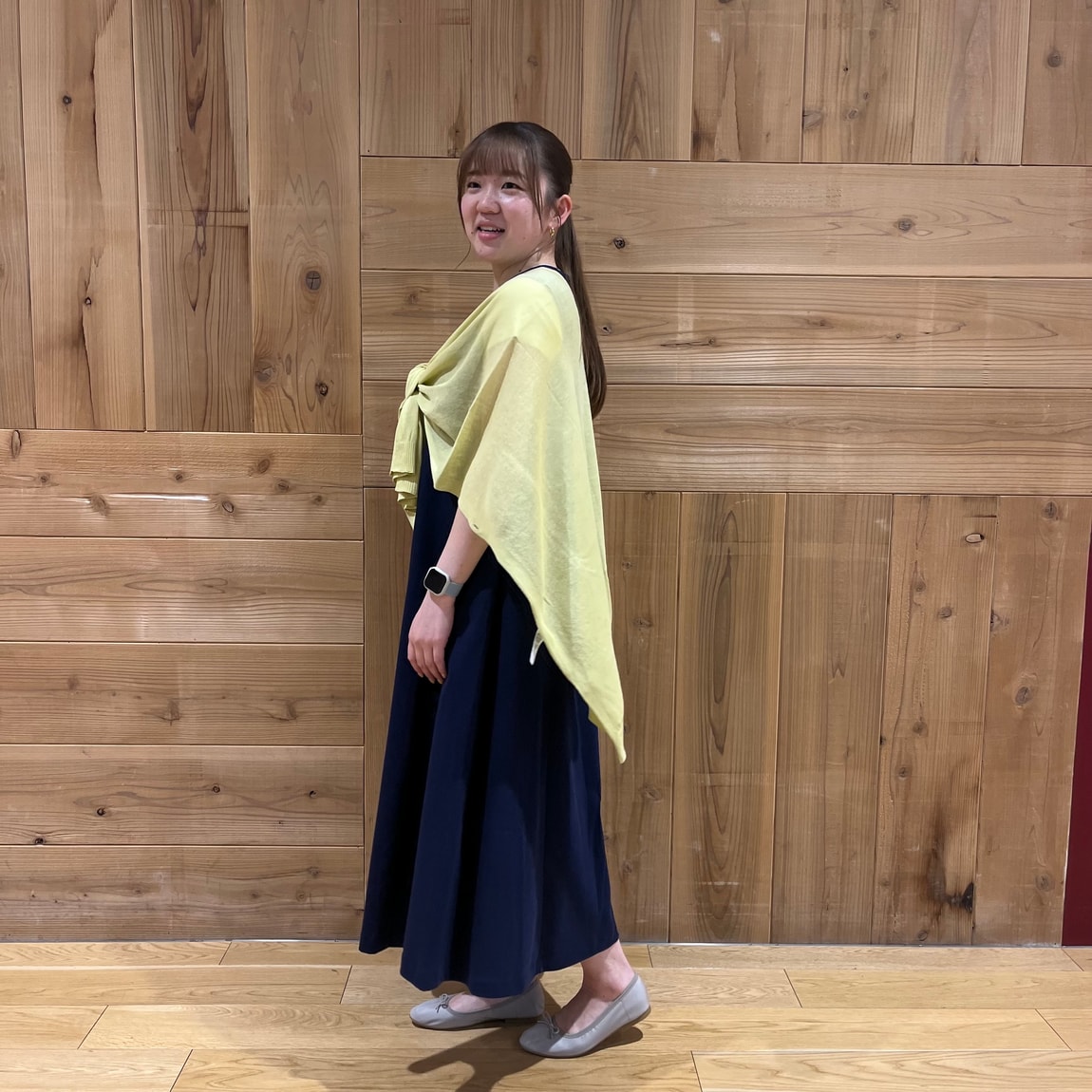 まだ寒さの残る日は上からカーディガンを羽織ったり、インナーを長袖に変えて着用してみても良いですね。