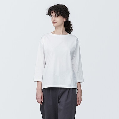 ■婦人 天竺編みボートネック七分袖Tシャツ