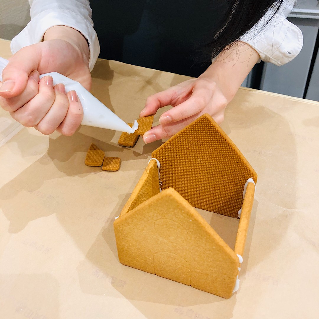 アイシングを作り、クッキーを組み立てお好みのデコレーションをして完成します。