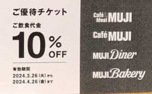 無印良品週間中に会員様向けにお食事をされた方、「お食事代金10%OFFチケット」をお持ちではありませんか。