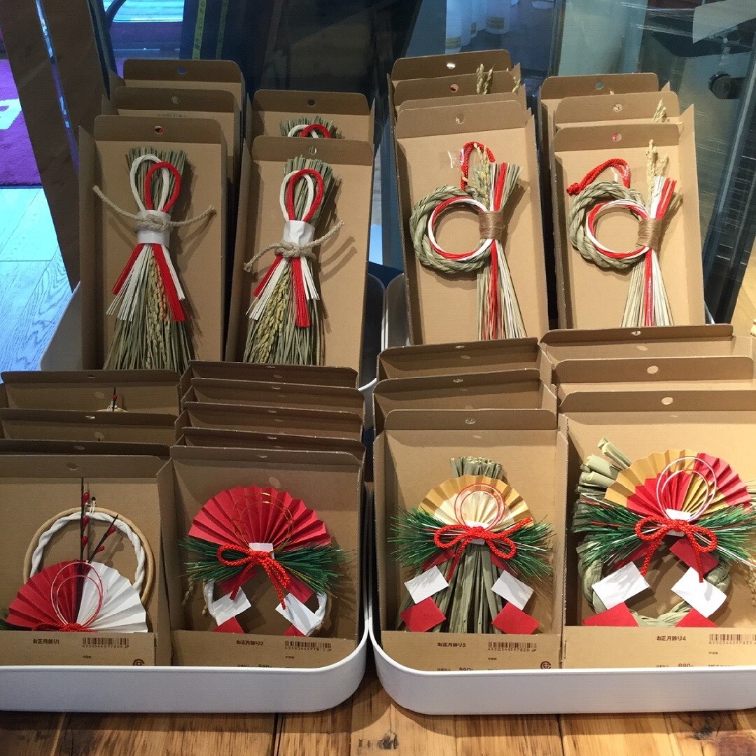 昨年も販売しておりましたお正月飾りは、590円と890円のものを3種ずつと1,290円のものを2種ご用意しております。