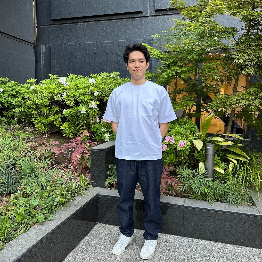 着用商品① 商品カテゴリ:紳士 商品名:涼感 UVカットワイド半袖Tシャツ 着用サイズ:L 着用カラー:白 税込:2990円