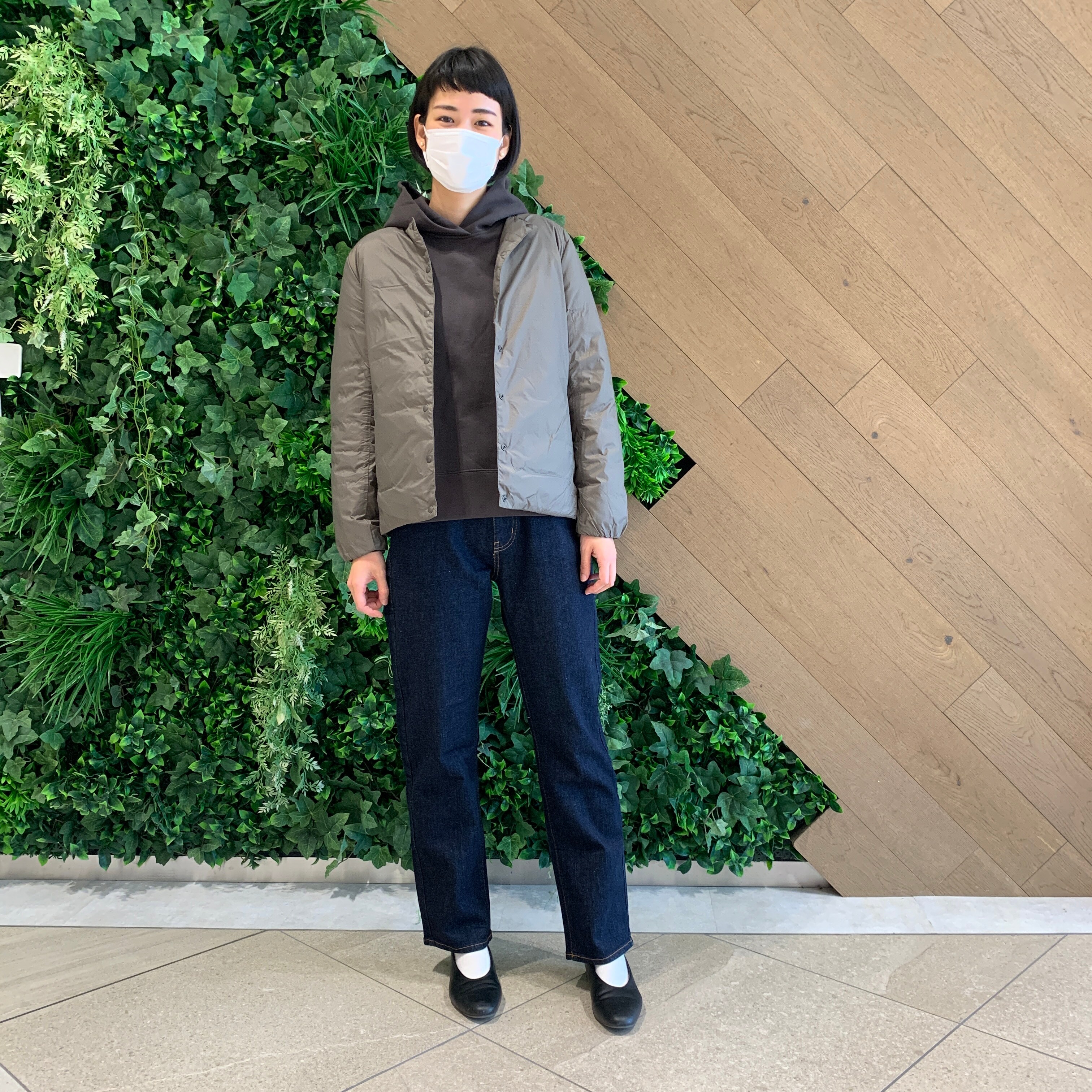 薄手のアウターも、軽量ダウンがあることで長いシーズン使えますね。