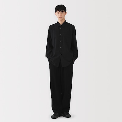 紳士 起毛ヘリンボーンレギュラーカラーシャツ 紳士M・黒
