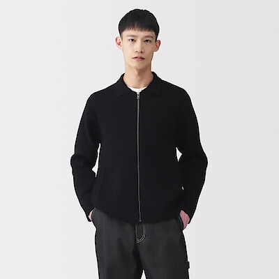 紳士 コットンミラノリブ襟付きジップカーディガン 紳士XL・黒