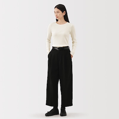 婦人 コットンカシミヤリブクルーネックTシャツ 婦人L・オフ白